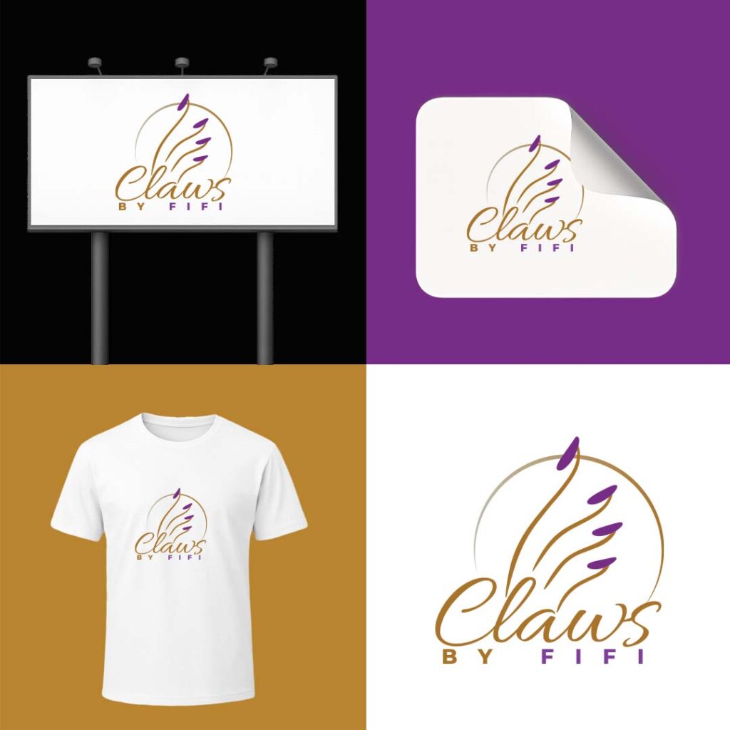 The Claws by Fifi logo was created to embody elegance, confidence, and feminine creativity. The smooth gold script font for “Claws” adds a touch of luxury and warmth, while the clean sans-serif “BY FIFI” in purple gives it a modern and empowering edge. The curved lines forming stylized fingernails create a sense of motion and grace, symbolizing the art and beauty of manicured nails. The circular outline ties everything together, representing wholeness and balance qualities that reflect both the brand’s professionalism and its attention to detail in nail design.